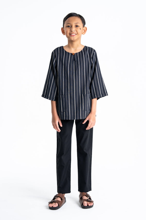 Boys' Cotton 3⁄4 Sleeve Round Neck Kurta - Navy